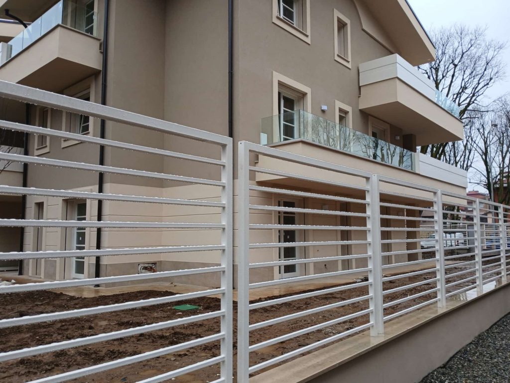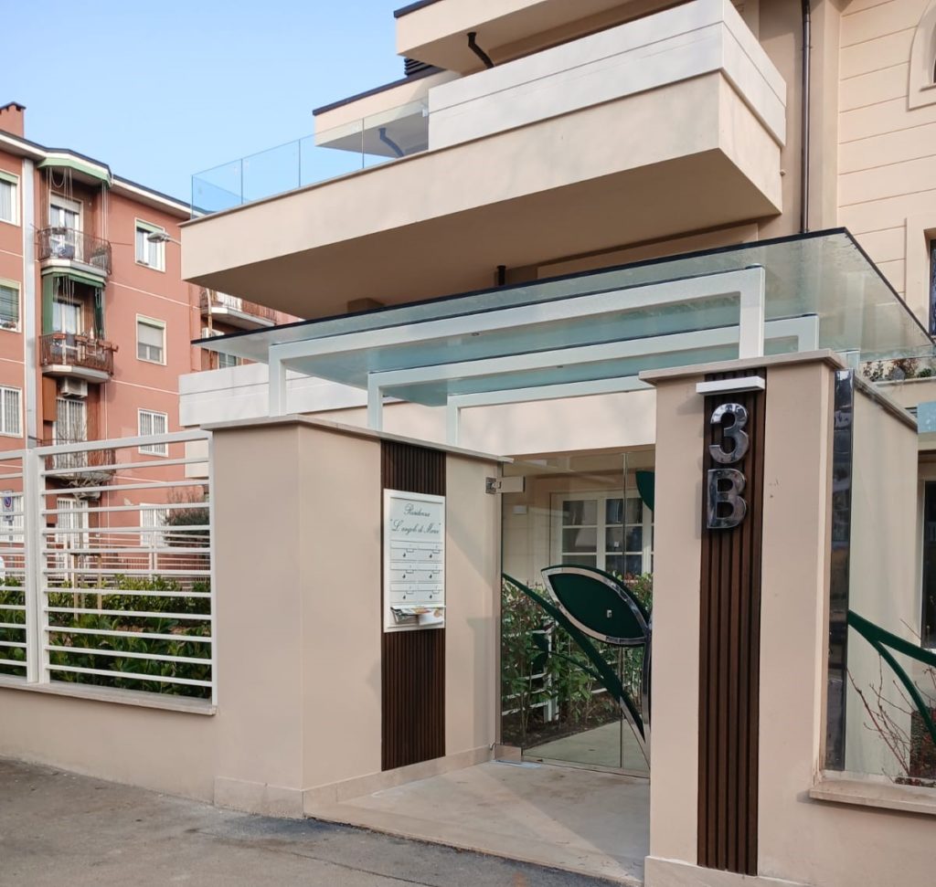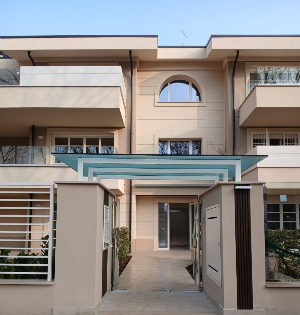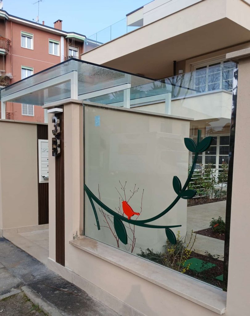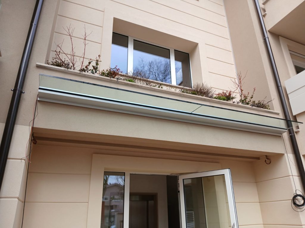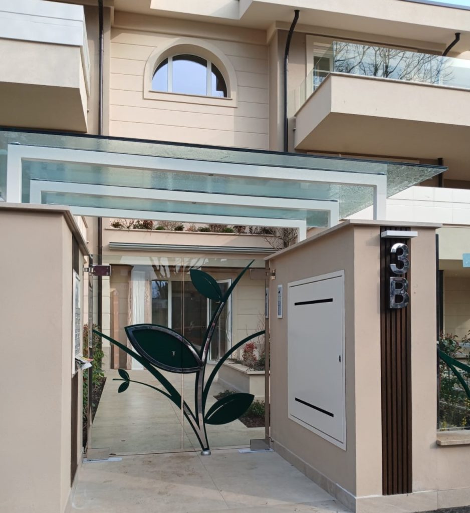 Cantiere ultimato fioriere in acciaio inox, parapetti pensilina e pedonale in vetro